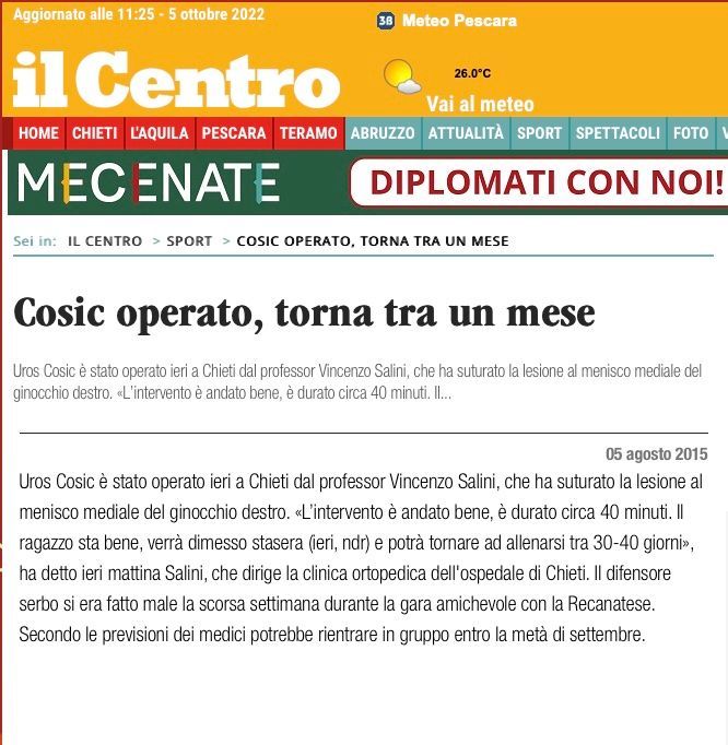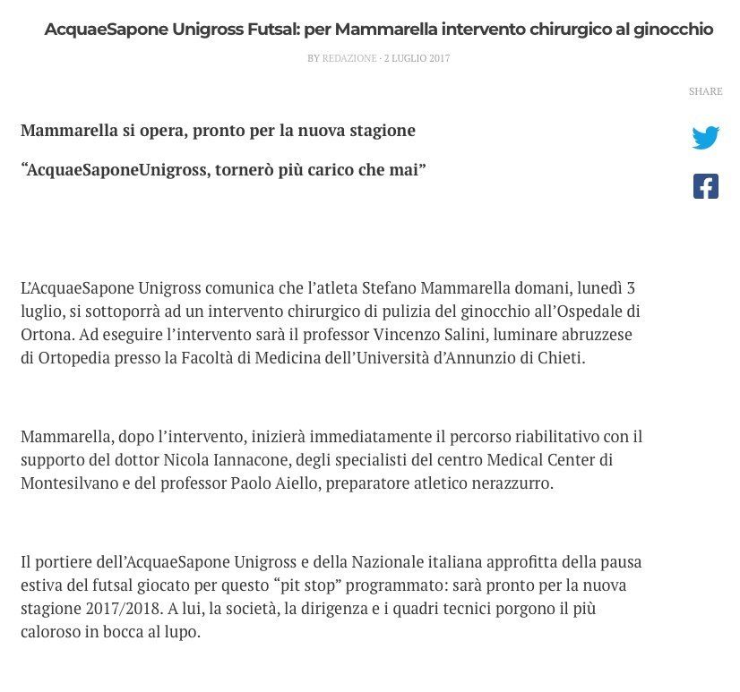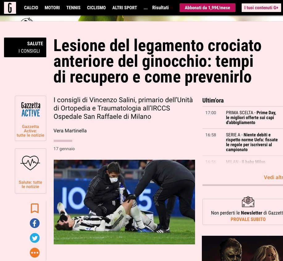 Chirurgia Ortopedica, Chirurgia del ginocchio e Medicina Sportiva con il Professore Vincenzo Salini.